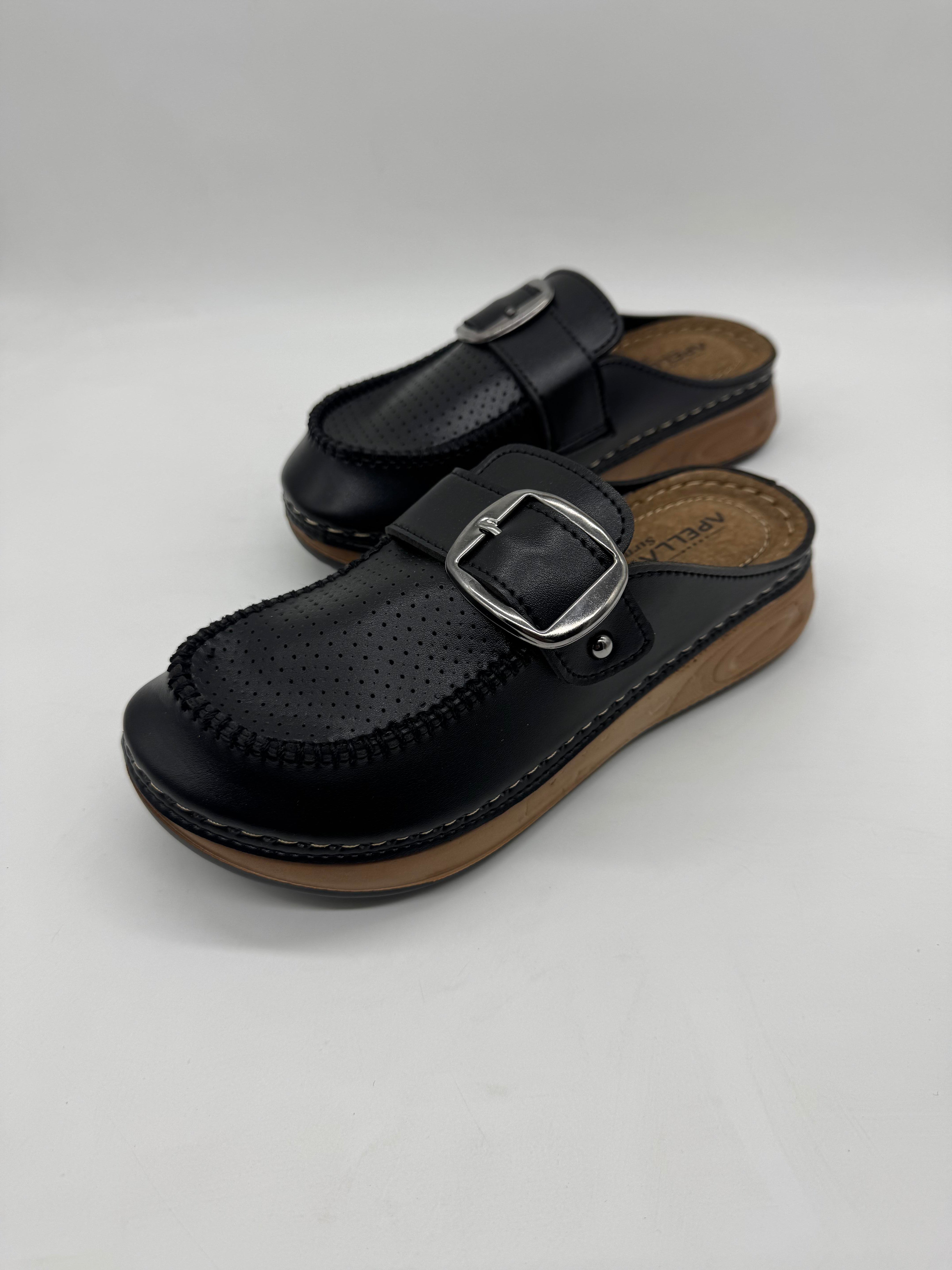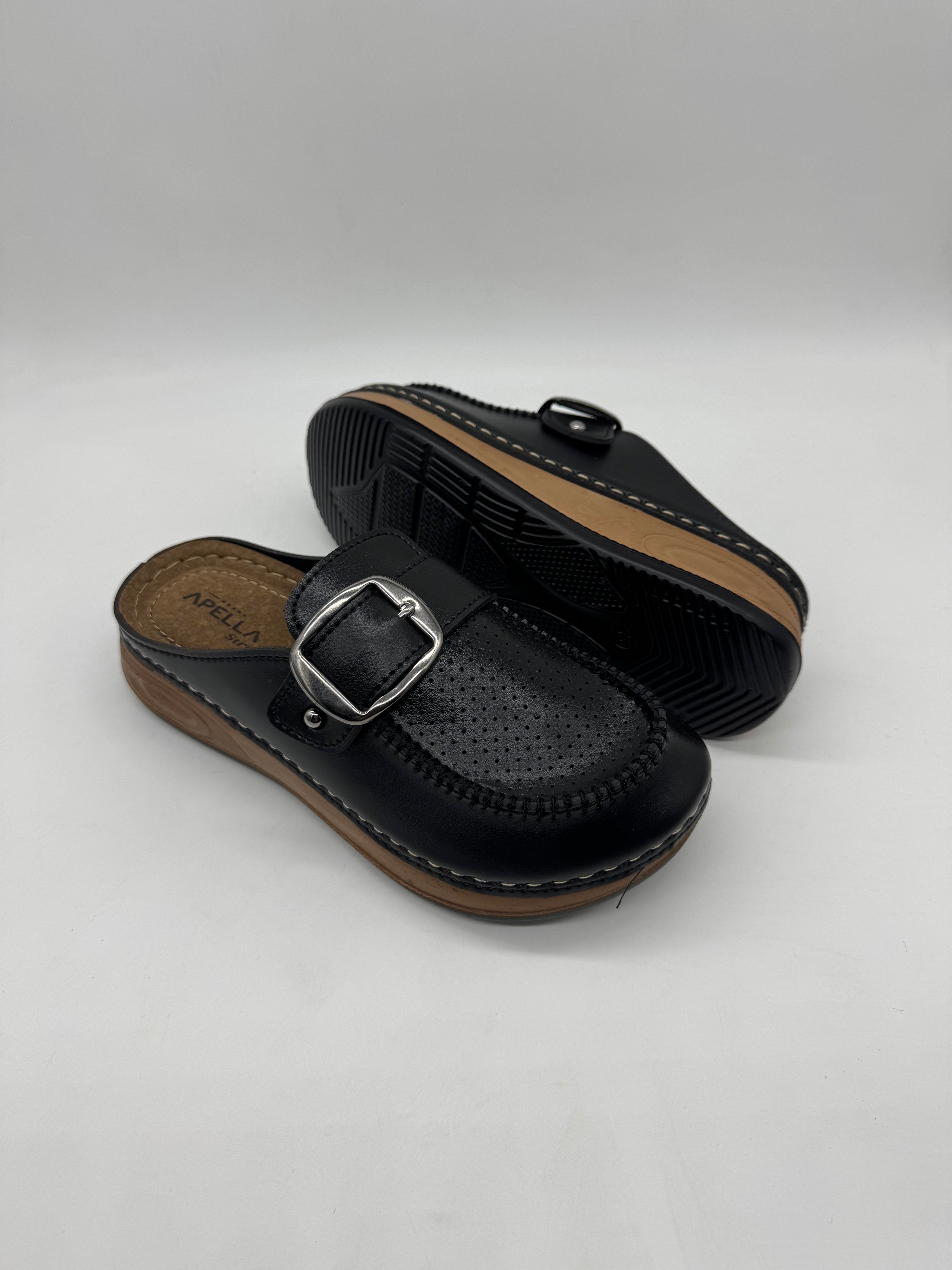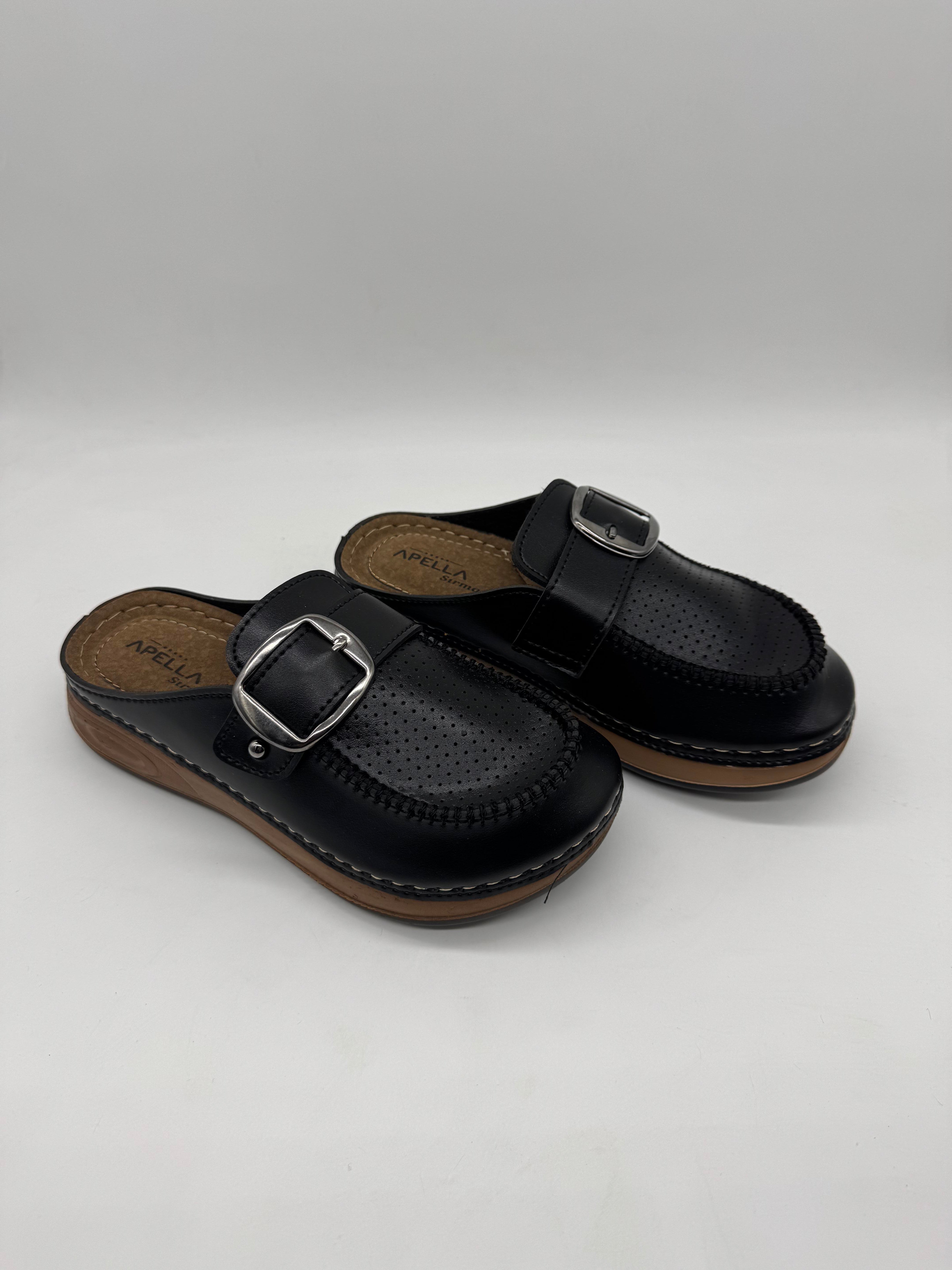 Apella 9016 önü kapalı tek tokalı kadın terlik; ortopedik iç tabanı, esnek yapısı ve koku yapmayan formuyla rahatlığı şıklıkla buluşturur.