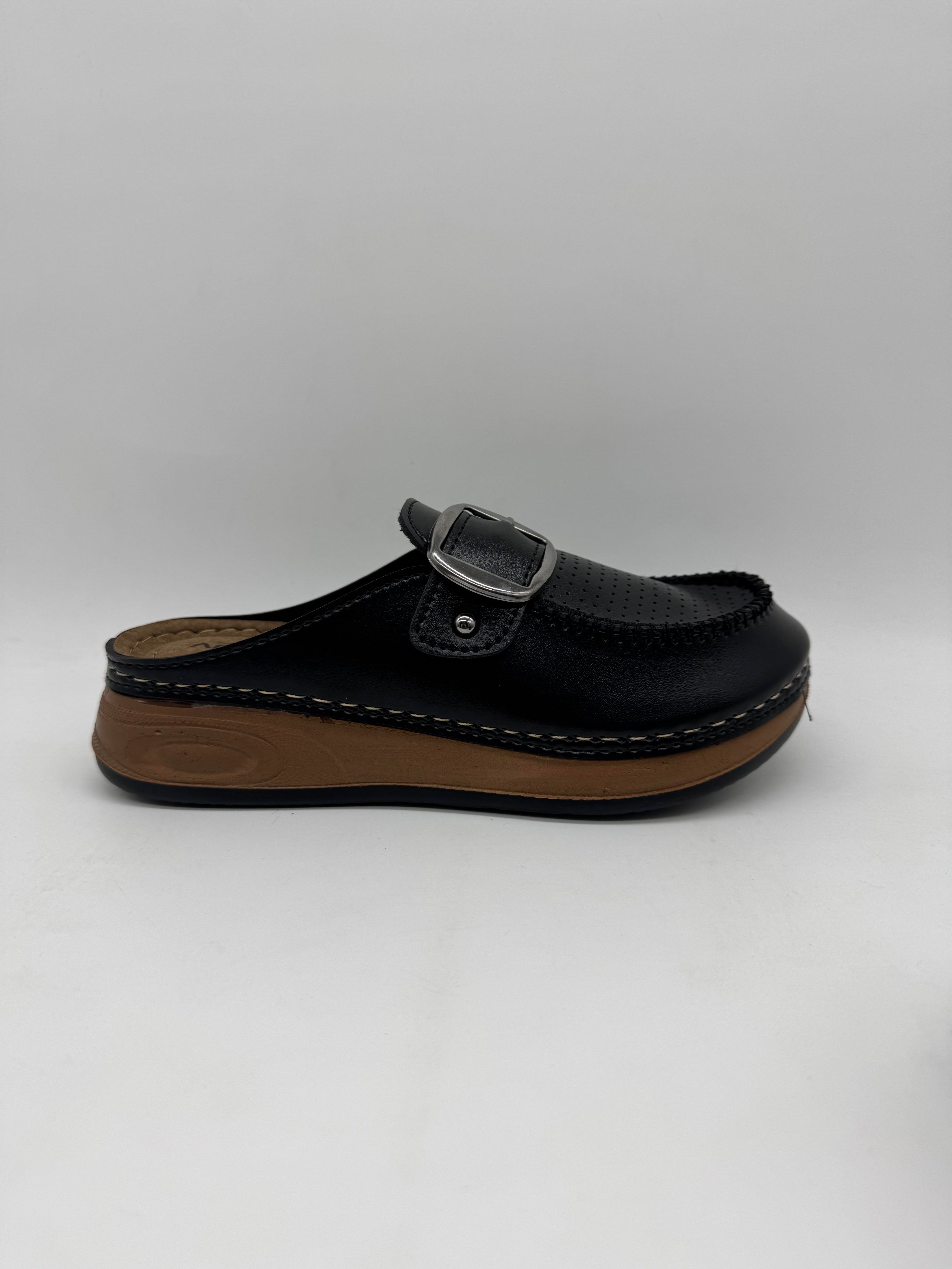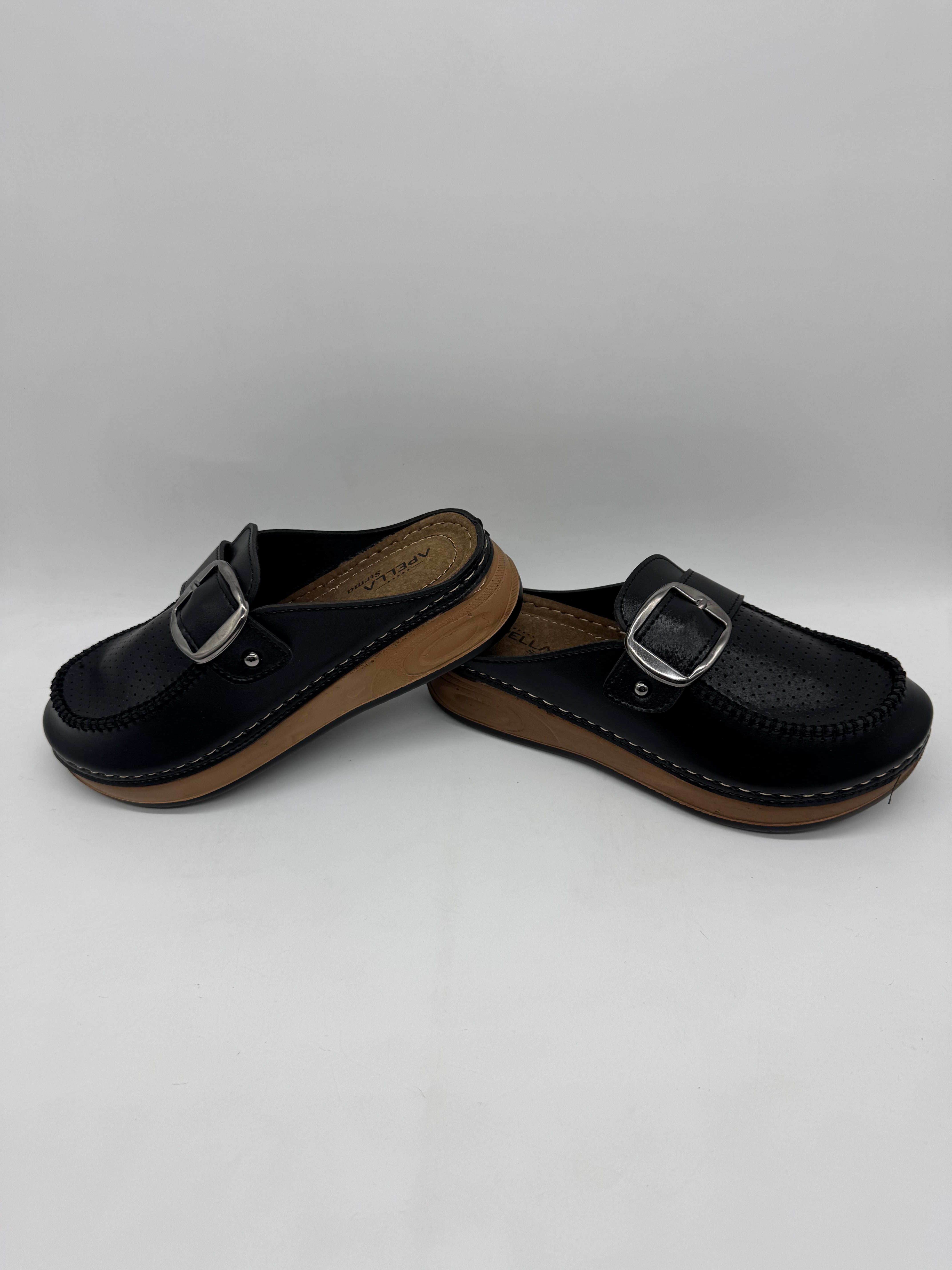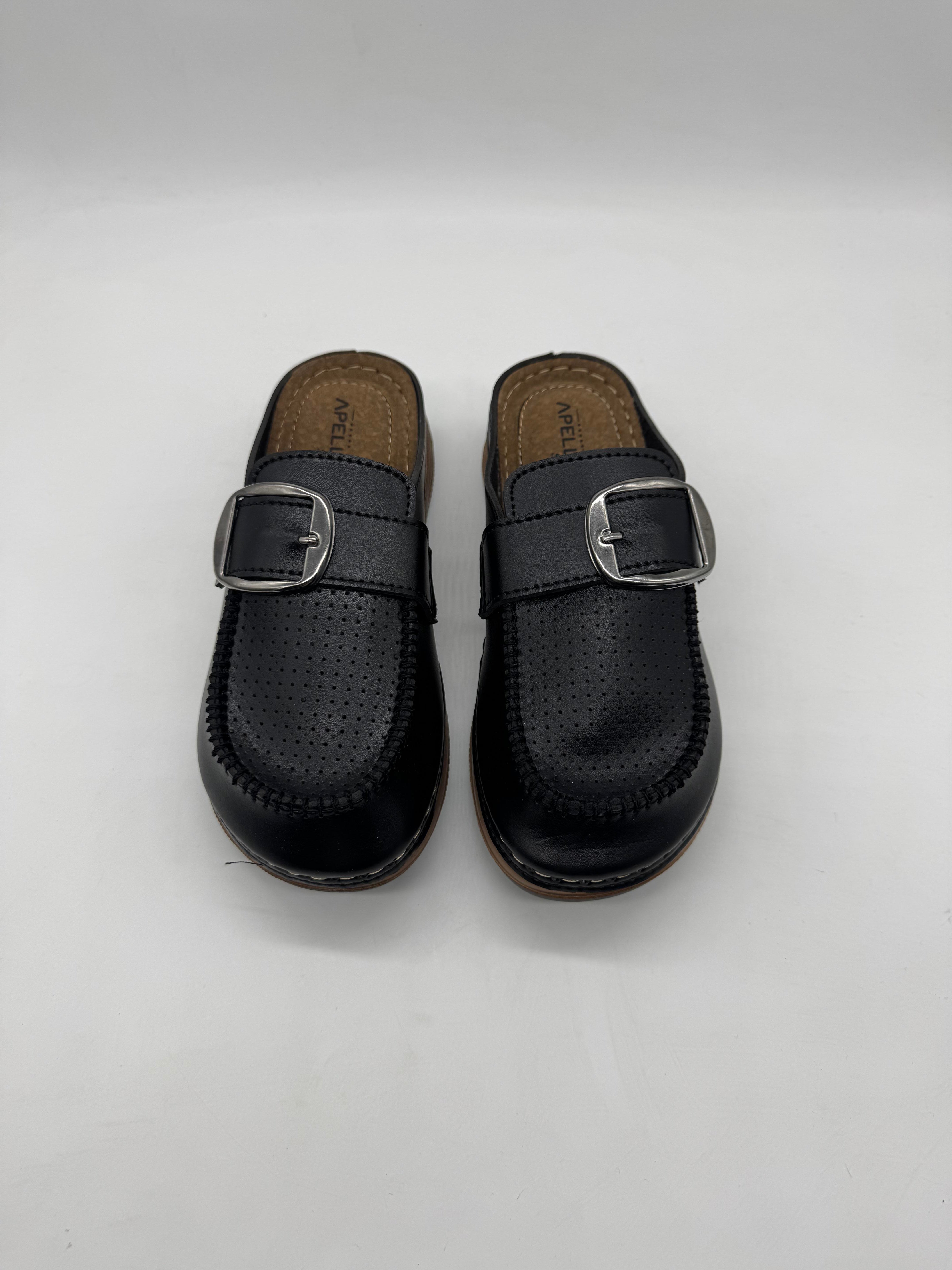 Apella 9016 önü kapalı tek tokalı kadın terlik; ortopedik iç tabanı, esnek yapısı ve koku yapmayan formuyla rahatlığı şıklıkla buluşturur.