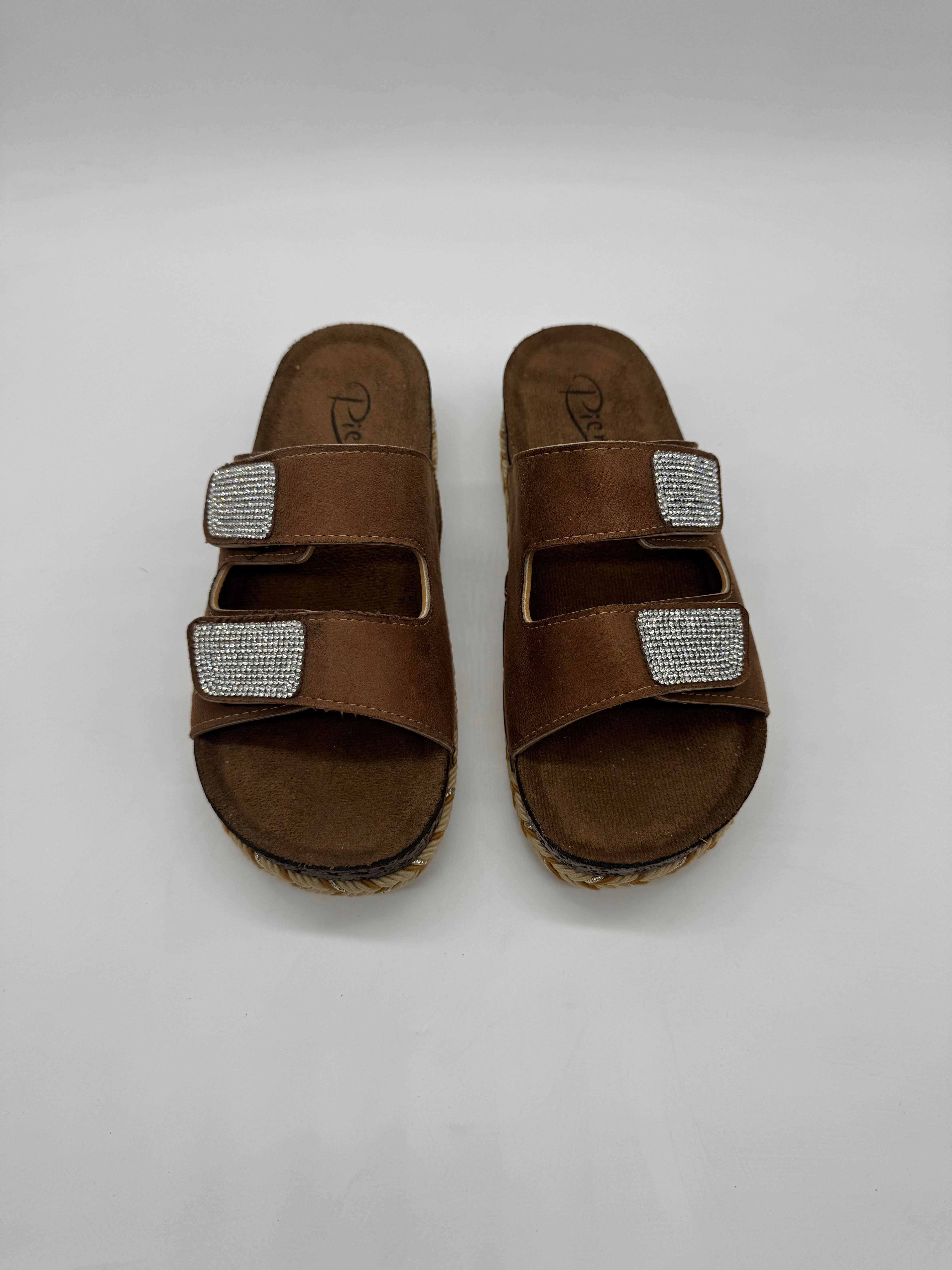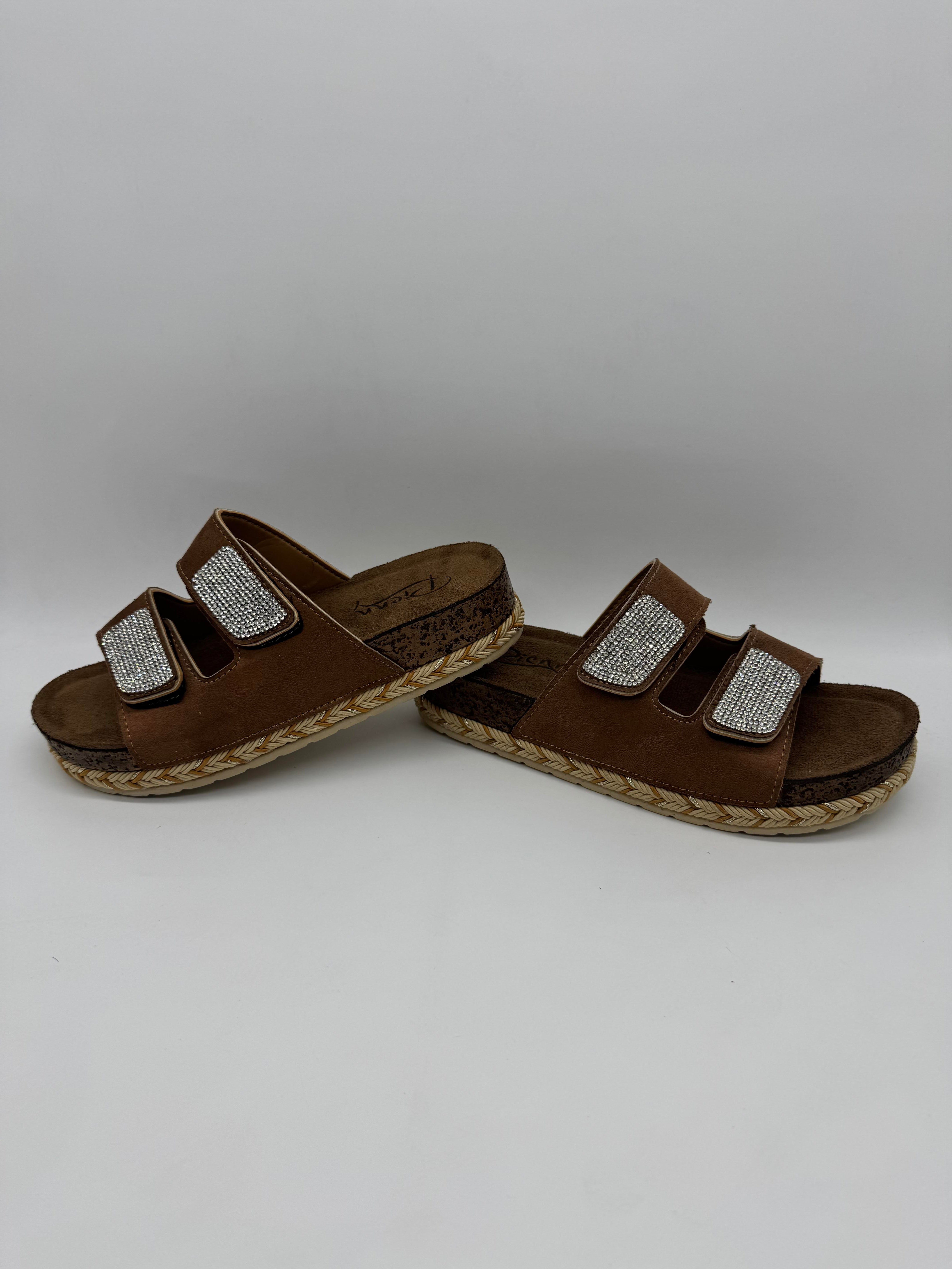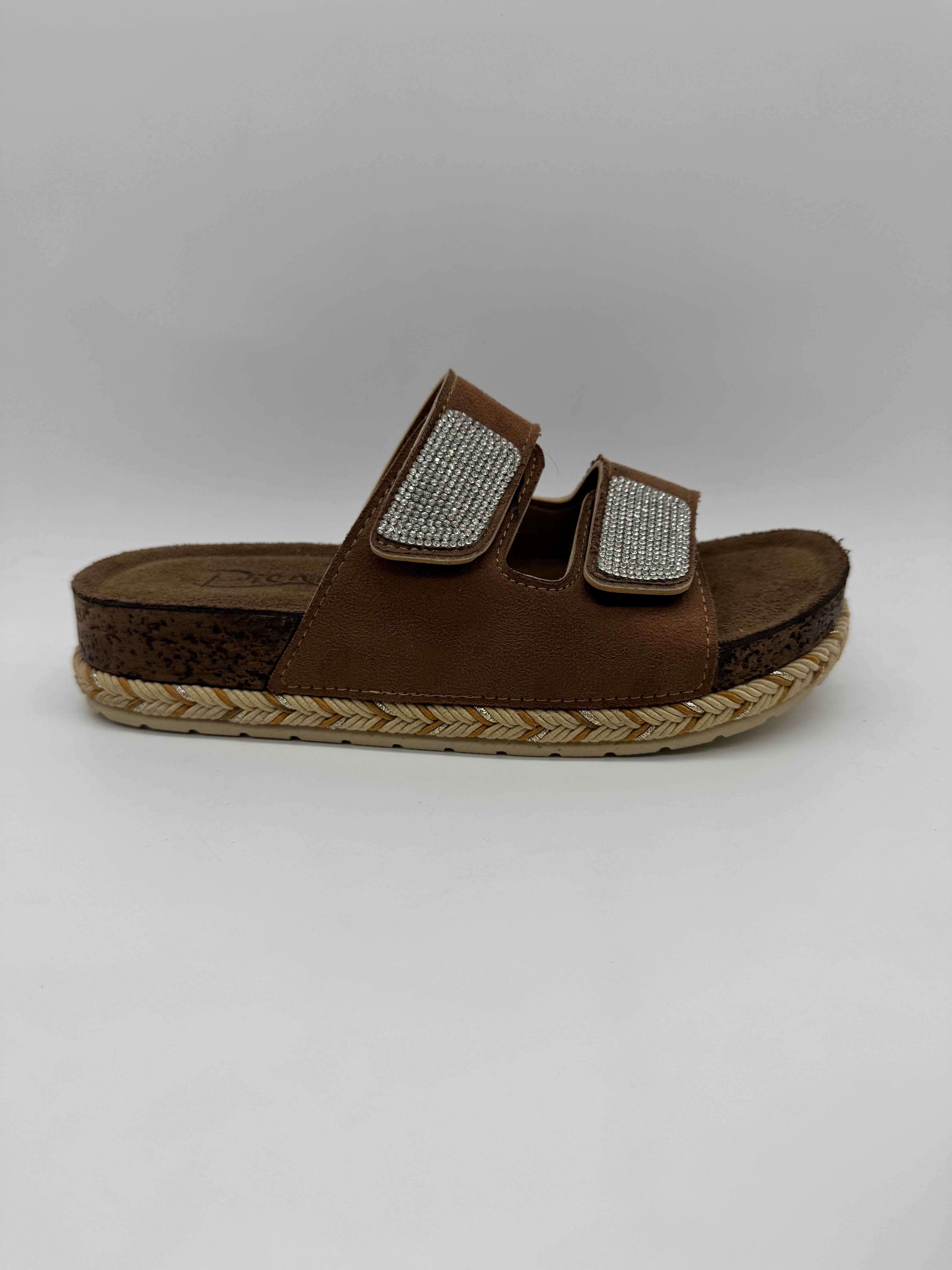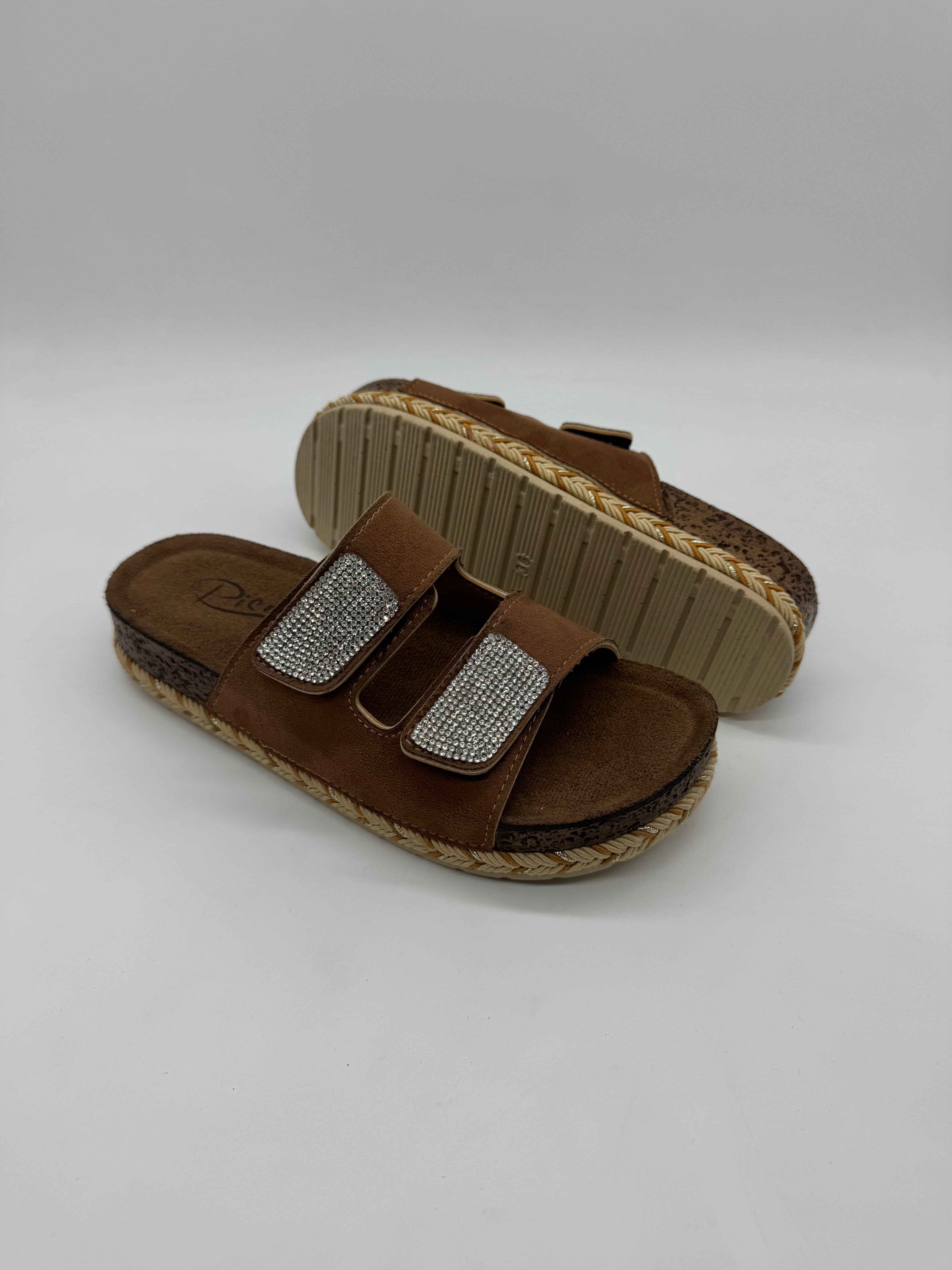 Pienn 20064-001, çift tabanlı ve taşlı çift bantlı tasarımıyla şıklığı ve konforu bir arada sunan, ayarlanabilir kadın terliktir.