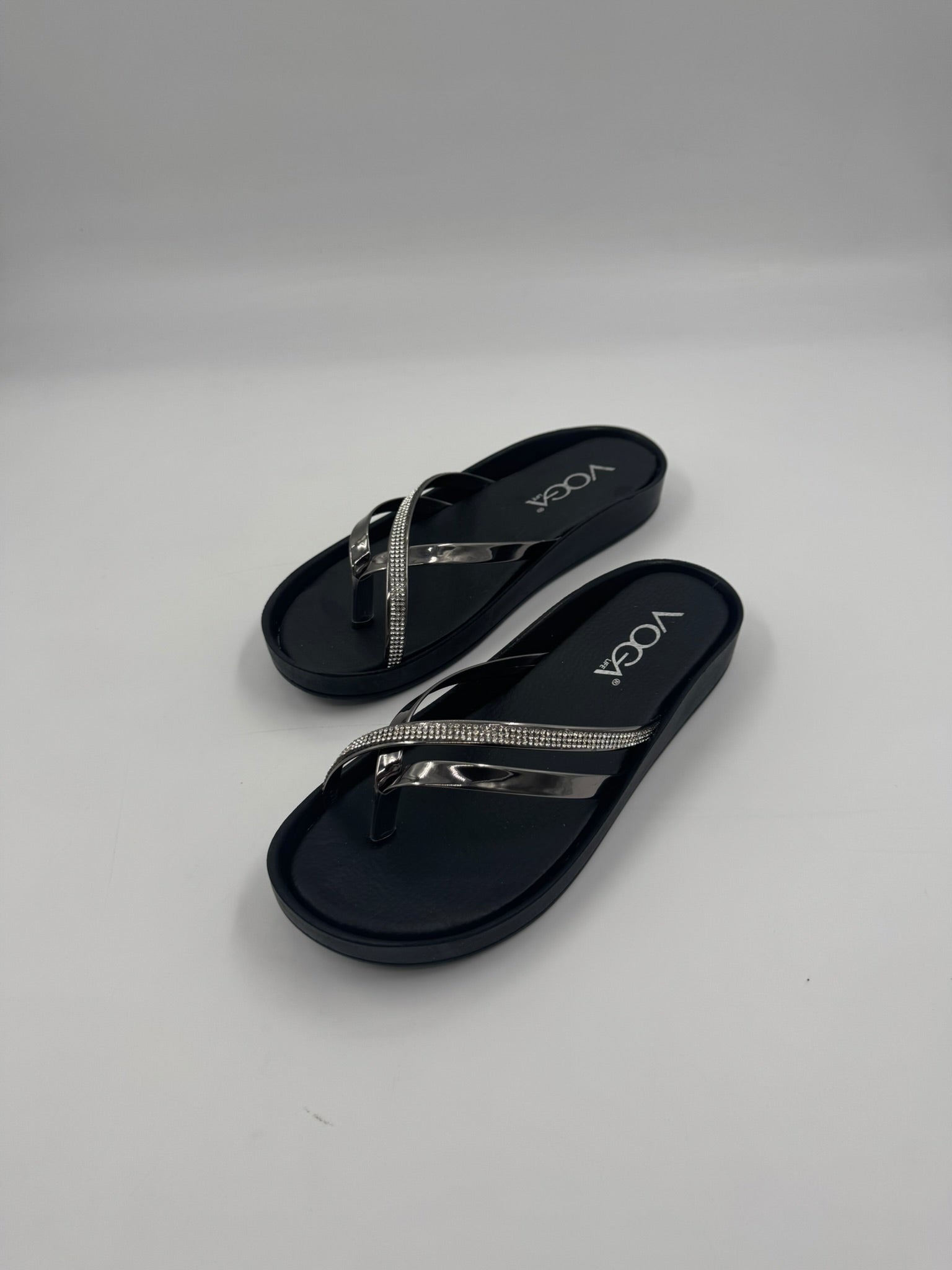 Voga 1537 kadın terlik, parmak arası ışıl ışıl ve sade şık tasarımıyla günlük kombinlerinizi tamamlar. Ortopedik tabanı, uzun süreli kullanımlarda bile maksimum konfor sunar. Suya dayanıklı parlak yapısı sayesinde hem evde hem dışarıda rahatlıkla kullanılabilir. Hafif ve zarif yapısıyla her kombine uyum sağlar, her yaştan kadına hitap eder.